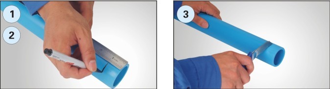 ②測(cè)量承口深度,在管材表面作出標(biāo)記。