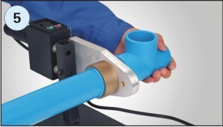 ⑤將管材、管件同時(shí)無(wú)旋轉(zhuǎn)地插入加熱器,對(duì)連接部位加熱。