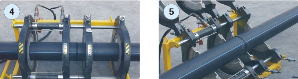 ④加熱完畢,取出加熱板,迅速接合兩加熱面,升壓至熔接壓力并保壓冷卻。