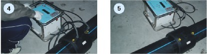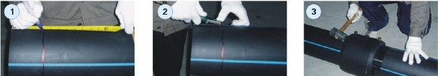 ③將電熔管件套在管材上,把管校直保證在同一軸線(xiàn)上。
