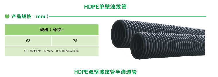 HDPE雙壁波紋管除了具有普通塑料管所具有的耐腐蝕性好、絕緣性高、內壁光滑、流動阻力小等特點以外,還采用了特殊的中空環形結構,具有優異的環剛度和良好的強度與韌性,及重量輕、耐沖擊性強、不易破損等特點。目前在發達國家的諸多領域已經廣泛應用,尤其在美國、加拿大、日本以及歐洲許多國家,雙壁波紋管廣泛應用于市政排水排污、農業灌溉、煤礦通風、化工、通信電纜護套等領域。實踐已經證明,在滿足工程應用的強度和剛度要求下,采用雙壁波紋結構可節約材料30%-50%,此外,對比混凝土管、鑄鐵管,有運輸安裝方便,降低施工人員勞動強度及降低工程的總投資等優勢,是混凝土管、鑄鐵管的理想換代產品。