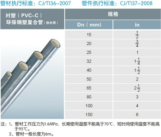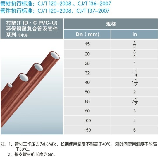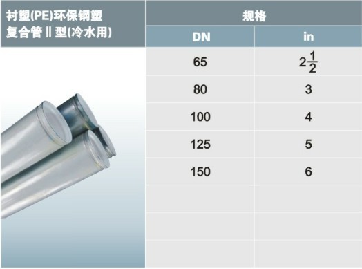 襯塑鋼塑復合管是采用鍍鋅鋼管為外管,內壁覆襯PVC-U或PVC-C管,經特殊工藝熱復合而成,與環保安全鋼塑復合管件配套使用。是一種無毒、無味、光滑、潔凈、不結垢、水流摩擦系數小,并且具有鋼管的硬度和堅韌度的復合管道。